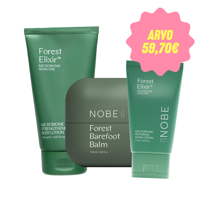 Kun haluat antaa lahjan, joka tuntuu rauhalliselta, hoitavalta ja aidosti hyvältä! NOBE yhdistää luonnon inspiroimat raaka-aineet, ihon mikrobiomia tukevat koostumukset ja helppokäyttöisen arjen luksuksen. Tästä osiosta löydät sekä valmiit lahjasetit että yksittäiset tuotteet, jotka sopivat täydellisesti lahjaksi hänelle, joka arvostaa luonnollista ja toimivaa ihonhoitoa.