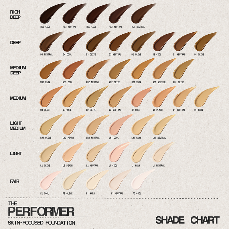 The Performer Foundation on kerrostettavissa kevyestä keskitason peittävyyteen ilman että lopputulos näyttää tai tuntuu raskaalta. Hengittävä ja pitkäkestoinen koostumus pysyy siistinä jopa 12 tuntia ja liikkuu ihon mukana. Meikkivoide levittyy kauniisti ja mukautuu ihon sävyyn ja tarpeisiin, tehden ihosta tasaisemman ja raikkaamman näköisen päivä päivältä.