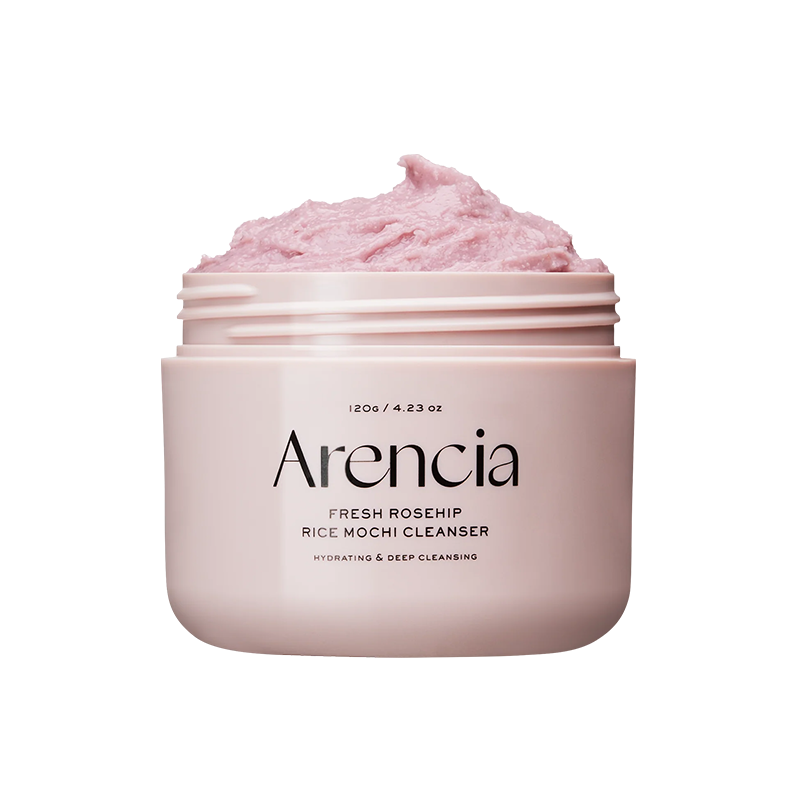 Suosittu Arencia Fresh Rosehip Rice Mochi Cleanser on herkän ja samean ihon unelmatuote, joka puhdistaa tehokkaasti mutta hellävaraisesti. Inspiraationsa pehmeistä mochi-leivonnaisista saaneen kasvojenpuhdistusaineen pehmeä vaahto syntyy hitaasti fermentoiduista kasviuutteista – tuloksena ylellinen koostumus, joka sulautuu ihoon ja huuhtelee epäpuhtaudet pois ilman kuivattavaa tunnetta.