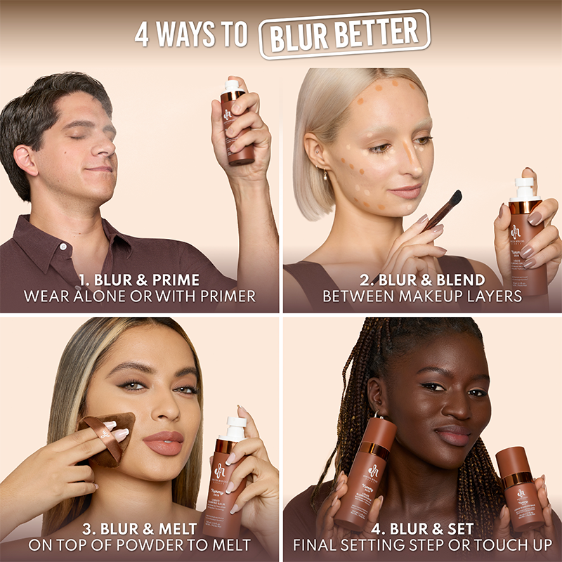 Ravista hyvin ennen käyttöä. Suihkuta puhtaalle iholle ja paina kevyesti sienen tai vipan avulla. Voit käyttää suihketta myös meikin kerrosten välissä sulauttamaan tuotteet yhteen ja luomaan blurraavan lopputuloksen. Viimeistele meikki lopuksi suihkauksella ja raikasta ilmettä pitkin päivää hillitäksesi kiiltoa.