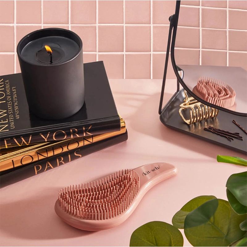 KITSCH Detangling Brush Terracotta selvittää takut hellävaraisesti ja jättää hiuksiin kauniin kiillon ja ilmavuutta. Harjan joustavat harjakset liukuvat hiusten läpi ilman nykimistä tai repimistä, mikä vähentää hiusten katkeilua ja tekee harjauksesta sujuvaa. Kompakti ja tyylikäs muotoilu sopii täydellisesti mukaan laukkuun, joten hiusten nopea siistiminen onnistuu missä tahansa.
