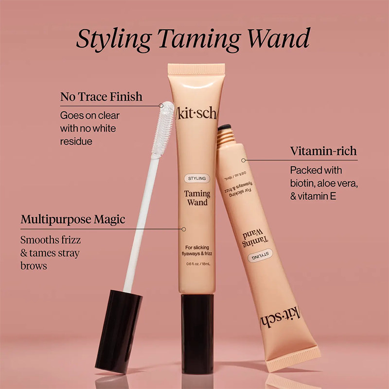KITSCH Styling Taming Wand on kevyt ja läpinäkyvä muotoilutuote, joka kesyttää pörröisyyden, irtohiukset ja baby hairit hetkessä. Se lisää hiuksiin kauniin kiillon ilman tahmeutta, kovuutta tai valkoisia jäämiä. Seerumimainen geeli on rikastettu biotiinilla, aloe veralla ja E-vitamiinilla, jotka kosteuttavat ja hoitavat hiuksia samalla kun pitävät tyylin paikoillaan koko päivän.