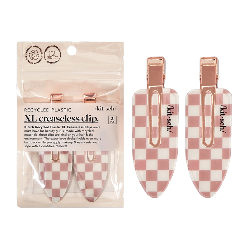 Suurikokoiset, kierrätysmateriaaleista valmistetut KITSCH XL Creaseless Clips -hiusklipsit pitävät hiukset napakasti poissa kasvoilta meikin, ihonhoidon tai hiustenlaiton aikana jättäen hiuksiin täysin sileän pinnan ilman painaumia. Ne sopivat erinomaisesti kaikille hiustyypeille ja ovat hellävaraisia niin hiuksille kuin ympäristöllekin. Kevyet ja helposti irrotettavat klipsit tekevät kauneusrutiineista huolettomia ja tyylikkäitä.