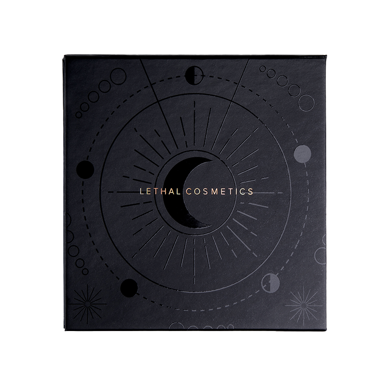Lethal Cosmetics MAGNETIC Customizable Palette Constellation 9 on kestävä luomiväripaletti, johon mahtuu 9 kappaletta Lethal Cosmeticsin yksittäisiä luomivärejä. Magneetin ansiosta ne suorastaan liukuvat paikalleen ja pysyvät hyvin kiinni. Paletin materiaalin ansiosta se on helppoa ja vaivatonta puhdistaa. Paletissa on peili.