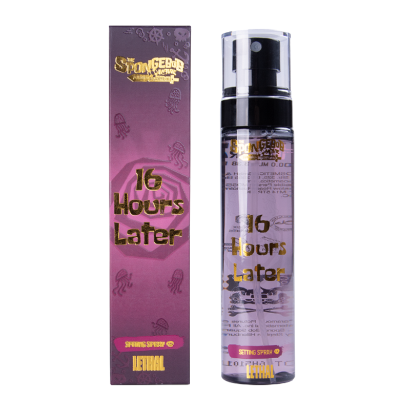 Lethal x SpongeBob The Movie 16 Hours Later Setting Spray on täydellinen viimeistelysuihke kaikille, jotka haluavat meikkinsä kestävän yhtä pitkään kuin meren salaisuudet. Tämä kevyt, pitkäkestoinen suihke on saanut inspiraationsa legendaarisesta 16 hours later -meemistä ja on suunniteltu lukitsemaan meikkisi paikoilleen aamun nauruista aina myöhäisillan seikkailuihin asti.