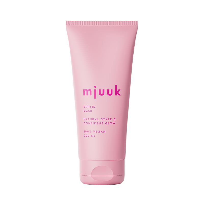 Mjuuk Repair Mask on hiusnaamio, joka antaa uutta voimaa vaurioituneille ja kemiallisesti käsitellyille hiuksille. Sen syvävaikuttava koostumus korjaa hiuksen rakennetta sisältäpäin, lisää joustavuutta ja vähentää katkeilua. Naamio jättää hiukset pehmeiksi, sileiksi ja helposti muotoiltaviksi, samalla kun se palauttaa niihin luonnollisen kiillon ja elinvoiman.