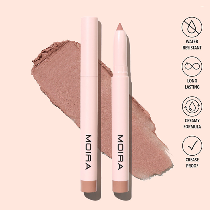 MOIRA At Glance Stick Shadow on kätevä ja helppokäyttöinen luomivärikynä, joka tuo silmämeikkiin intensiivisen värin yhdellä vedolla. Sen pehmeä ja kermainen koostumus liukuu luomille vaivattomasti, tarjoten pitkäkestoisen ja tasaisen lopputuloksen. Tämä monipuolinen luomivärikynä sopii täydellisesti sekä arkeen että juhlaan, antaen sinulle mahdollisuuden luoda nopeasti näyttävän ja huolitellun lookin. Luomivärikynää voi käyttää silmänrajauskynän tapaan tai sellaisenaan luomivärin tapaan. Se sopii erinomaisesti myös silmämeikin pohjustukseen. Kynässä on sisäänrakennettu teroitin mukana.