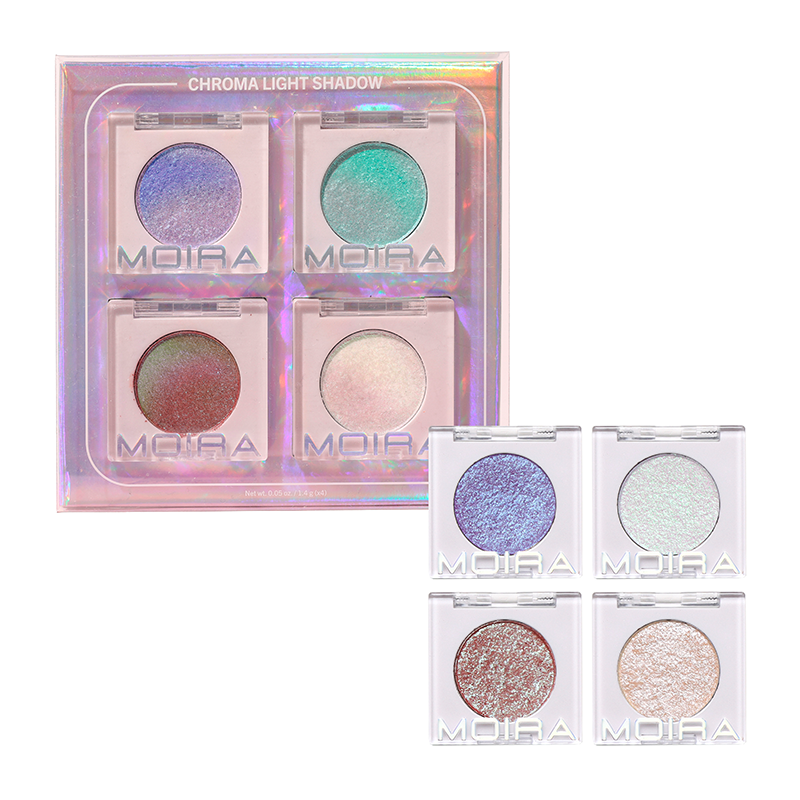 MOIRA Chroma Light Shadow Set vie silmämeikkisi uudelle tasolle neljän säihkyvän ja runsaspigmenttisen luomivärin voimalla. Tämä setti sisältää metallinhohtoisia Chroma Light -luomivärejä, joiden intensiivinen kiilto ja samettinen koostumus tekevät vaikutuksen yhdellä sipaisulla. Jokainen sävy on suunniteltu vangitsemaan valoa ja luomaan katseita keräävän lopputuloksen, joka kestää koko illan ilman haalistumista tai varisemista.