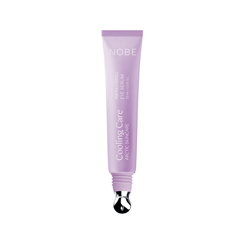 NOBE Cooling Care Awakening Eye Serum on herkän silmänympärysihon kosteuttamiseen tarkoitettu virkistävä silmänympärysseerumi. Seerumi sisältää Fazerin kauraksylitolia sekä aloe veraa ja piparminttua, jotka kosteuttavat väsyneitä ja turvonneita silmänalusia tuntuen iholla rauhoittavalta ja viilentävältä. Tuotteen applikaattori tehostaa viilentävää vaikutusta entisestään käytön aikana.