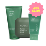 NOBE Forest Elixir -sarja on suunniteltu vahvistamaan ihon omaa mikrobiomia ja tukemaan ihon luonnollista tasapainoa. Käsivoide pehmentää kädet nopeasti ilman tahmaa, vartalovoide kosteuttaa ja vahvistaa ihoa pitkäkestoisesti, ja jalkavoide ravitsee kuivat jalat tehokkaasti mutta hellästi. Lopputuloksena on pehmeä, hyvinvoiva ja suojattu iho päästä varpaisiin.
