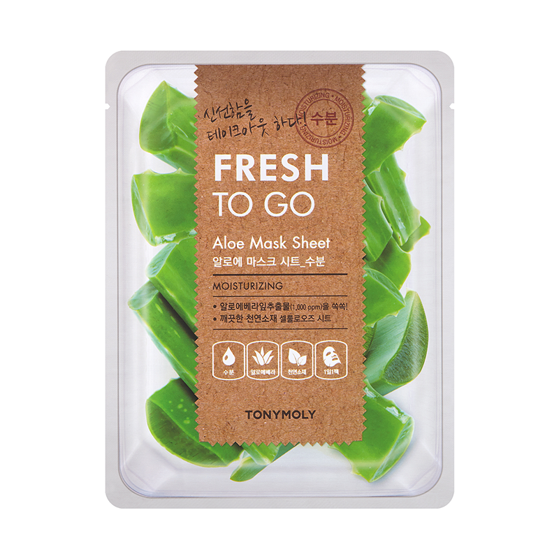 TONYMOLY Fresh to Go Aloe Mask Sheet on rauhoittava ja kosteuttava kangasnaamio, joka hellii ihoa aloe veran luonnollisella teholla. Sen seerumimainen hoitoneste imeytyy tehokkaasti ihoon, lievittäen kiristävää tunnetta ja tuoden iholle virkistävää kosteutusta. Aloe vera tunnetaan sen ihoa rauhoittavista, viilentävistä ja kosteutta sitovista ominaisuuksista, minkä ansiosta tämä naamio sopii täydellisesti myös herkälle ja ärtyneelle iholle.