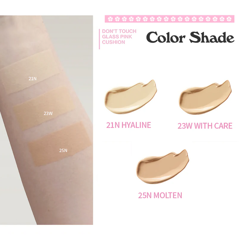 Unleashia Don't Touch Glass Pink Cushion tuo kasvoillesi täydellisen hehkun ja luonnollisen lopputuloksen. Tämä kosteuttava ja ilmavan kevyt tyynymeikkivoide antaa kuulaan lopputuloksen lisäksi SPF50+ PA++++ UV-suojan. Innovatiivinen koostumus sisältää runsaasti kosteuttavaa hyaluronihappoa, joka pitää ihon kosteutettuna ja hehkuvana koko päivän. Se sisältää myös antioksidanttipitoista E-vitamiinia ja niasiiniamidia, jotka yhdessä auttavat ihoa pysymään hyvinvoivana myös meikkivoiteen alla. Don't Touch Glass Pink Cushion sopii kaikille ihotyypeille, myös rasvoittuvalle- ja sekaiholle.